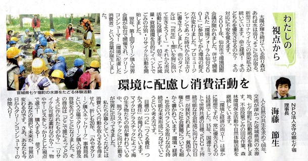 令和2年8月17日河北新報夕刊に執筆しました。