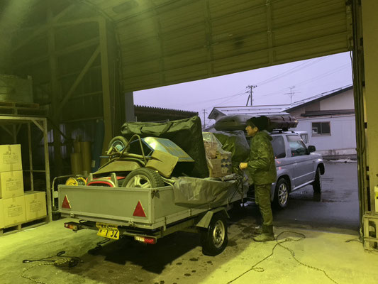 1月23日石川県に向けトレーラーに物資(主に水)を満載し出発!