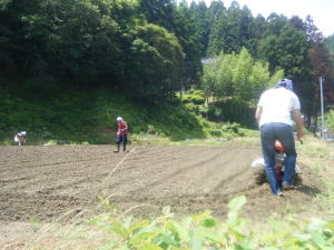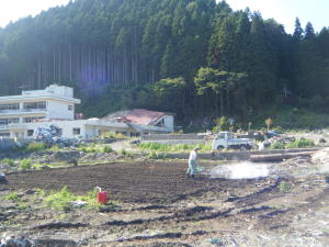 こちらは小学校の隣、「相川の郷農園」小山さんが生石灰を持ってきて一緒に作業を手伝ってくれました。