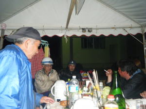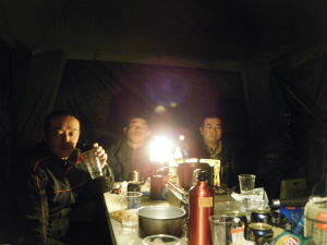 白いテントの裏はキッチン兼寝室です