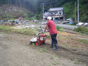 瓦礫の畑の開墾開始