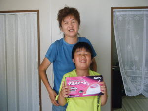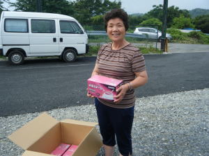 避難所に草刈り機械を贈呈