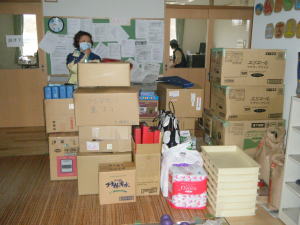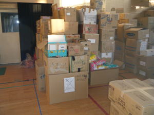 支援物資の山々in東和
