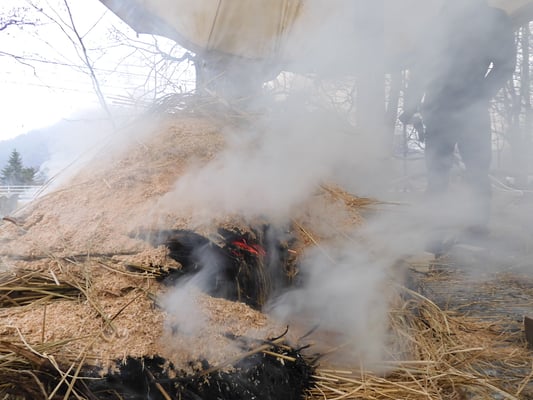 徐々に火が上がりもみ殻が焦げて野焼き開始!(^^)!