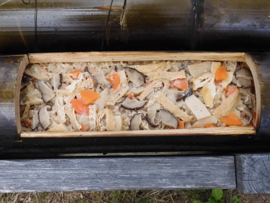 恒例の竹飯盒をつくり