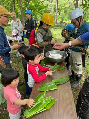 2023/05/22 2023年5月山がっこ 笹巻きつくり&植林杉の枝打ち笹巻きつくり&植林杉の枝打ち この地区の食文化 この時期恒例の笹巻きづくり 熊笹を刈りに行って お米を入れて ぐつぐつ煮る 朴の葉っぱにも巻いてみた 結果は? おかずも恒例海ちゃんの手作り納豆&鳥そぼろに卵そぼろ おいしいおいしいとみんなお代わりして完食(^_-)-☆ tagPlaceholderカテゴリ: