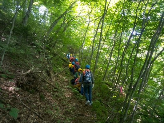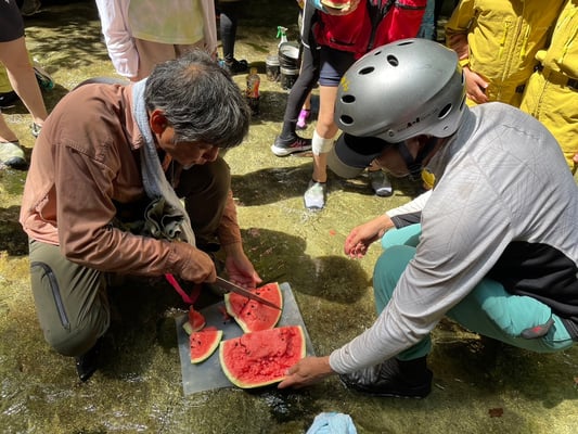 2024/07/21 2024年7月山がっこ 二年連続でカヌー渡れず😢全行程を陸路で滝まで 山を登り、崖を下りて、ようやく沢に着きました👌 沢を登り着いた滝壺 ここからは、子どもたちが主役です\(^o^)/ 前日から仕込んでおいたトマトを水代わりに頂いて 滝ノ水でうどんを煮て食べました。 滝の前で、スイカの名産地を歌って 「尾花沢」で買ってきたスイカ割りでおお盛り上がりの山がっこ 子どもたちも保護者達も、少数精鋭のスタッフも 頑張りましたm(__)m tagPlaceholderカテゴリ: