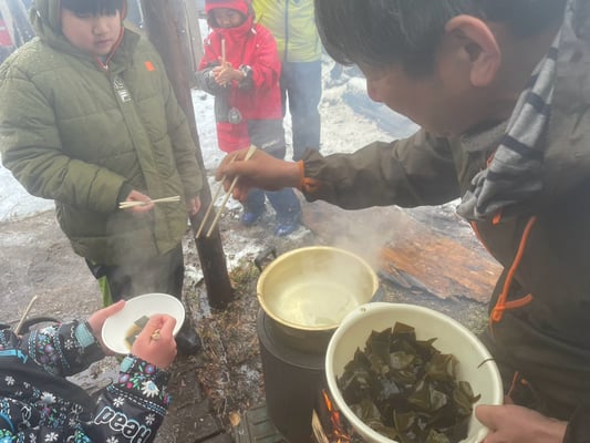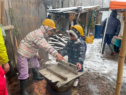 火起こしからお湯を沸かし