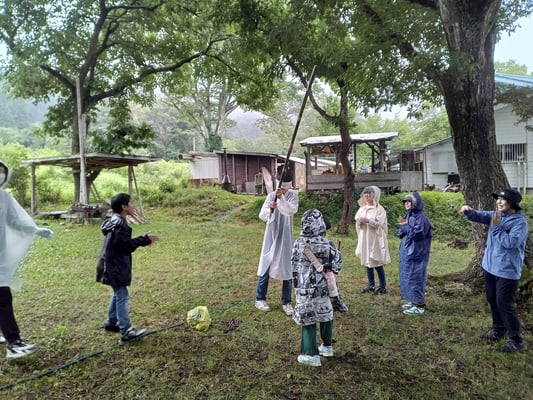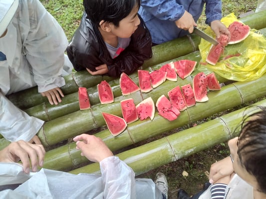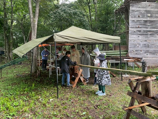 着いて早々に竹を割ってマイ箸つくりからの流しソーメン